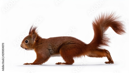 Agile Red Japanese Squirrel Strolling Sideways with a Serene Mien amidst the Tranquil Japanese Landscape, Showcasing Vibrant Autumnal Hues at Sunset.
