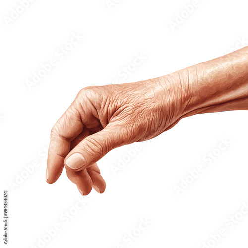 Aging hand reaching out, white isolate background