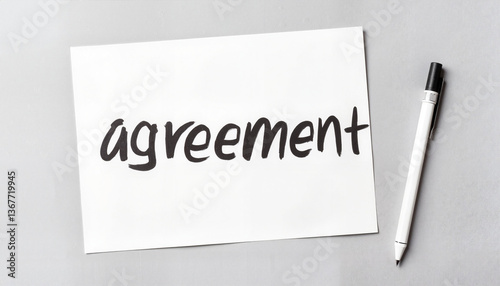 Agreement document on a gray background with a pen
