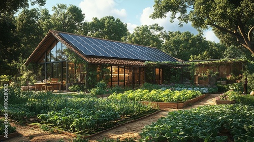 agricultural innovation using agrivoltaics, combining solar panels and crops for a sustainable farming solution that generates renewable energy while producing food