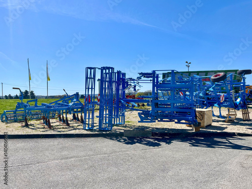 Agricultural machinery on open display — cultivators and soil tillage equipment