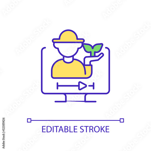 Agriculture lessons online RGB color icon. Planting and cultivation. Farming and agribusiness tutorials. Isolated vector illustration. Simple filled line drawing. Editable stroke. Arial font used