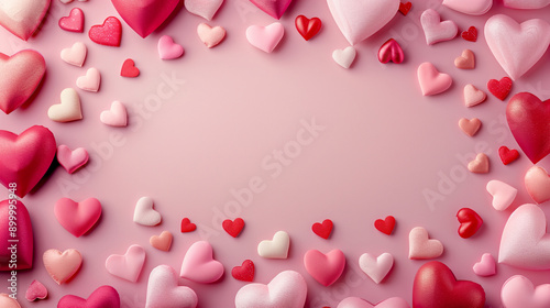 ピンク色の様々なハートに囲まれた愛の告白フレームを描いたAI生成画像