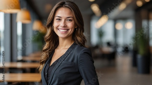 自然な笑顔で魅力を放つ若いビジネスウーマンが示す、プロフェッショナルな一瞬。生成AI