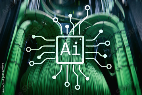 AI, Artificial intelligence, automation and modern information technology concept on virtual screen.