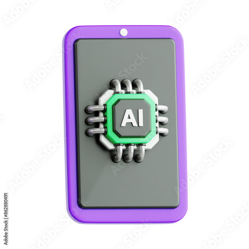 Ai artificial intelligence chip on smartphone screen 3d icon illustration render design