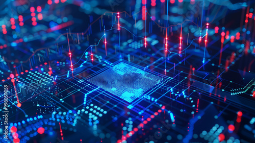 AI Artificial Intelligence Digital futuristic chip data concept. Neon glowing blue technology electronic concept. Communication innovation business stock market background presentation