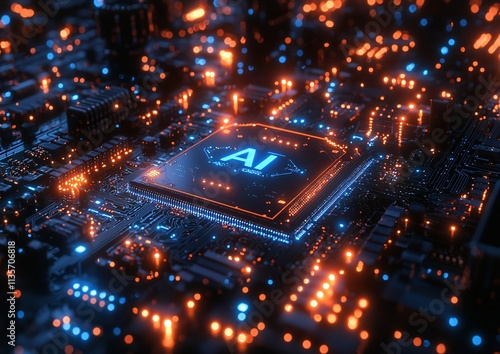 AI Chip Futuristic Technology Circuit Board Digital Artificial Intelligence Innovation Glow Network