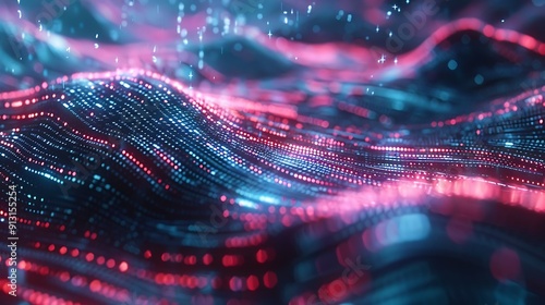 AI core surrounded by pulsating digital waves and holographic interfaces.