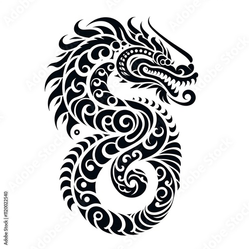 AI Generate of Dragon Shape in Samoan Art style isolated in white