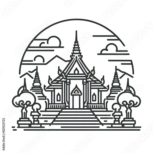 AI Generate of Line Icon of Buddhist Temple, Buddha's Temple, Buddha, Temple, with White Background