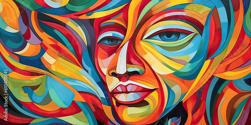AI Generated. AI Generative. Graphic Illustration draw ink sketch canvas pattern with geometric abstract woman lady face head. Graphic Art