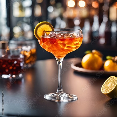 AI generated illustration of a stylish beverage setting featuring glasses of a colorful cocktail