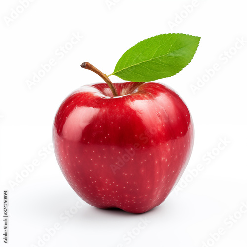 AI generated image - stock photo of a red apple with green leaf, isolated on white background