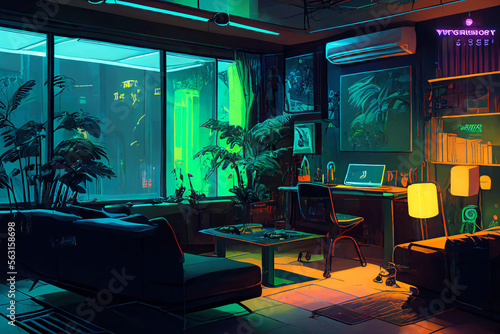 美麗幻想的サイバーパンクパンク背景のイラスト(AI generated image)