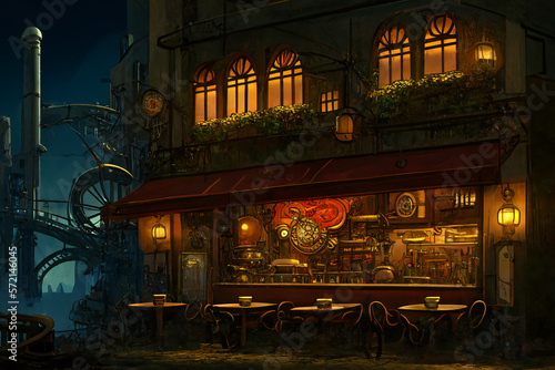 アニメ映画風のスチームパンク系背景のイラスト(AI generated image)