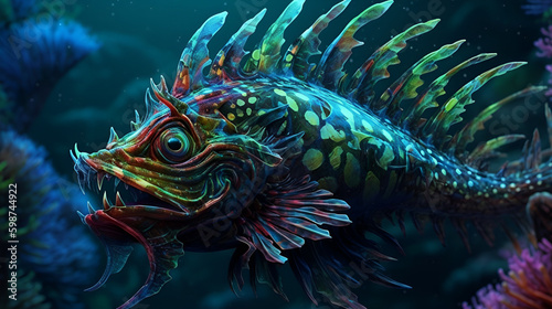 ai generated of Mariana Trench Magical fantasy psychedelic creatures,photorealistic,RGB,Colors