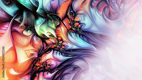 AI generated with intricate fractal designs artwork a detailed painting with vibrant colors. Colorful Abstract Swirls of Light and Energy on Soft Background