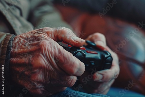 ai generative Grandpa's wrinkled hand holds the joystick