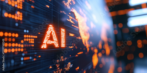 AI illuminated in vibrant orange lights on digital display, showcasing technology