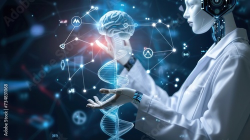AI in Healthcare. DNA double helix intertwined with digital AI elements