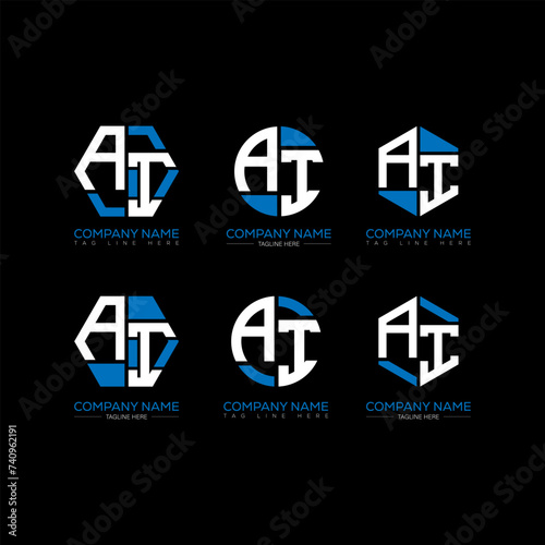AI letter logo set design.AI monogram polygonal and circle shape vector. AI unique design.