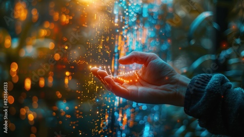 AI Male hand reaching for graphics Developing AI Ethics, Compliance with Standards business policy
