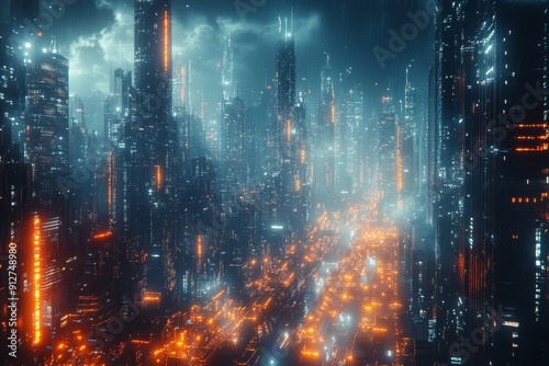 AI metropolis, advanced urban design, digital networks, futuristic technology