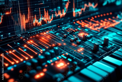 AI music composition interface with illuminated controls creates dynamic soundscapes for innovative musical projects