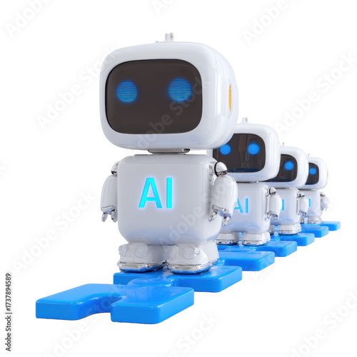 AI Robots in Line on Transparent Background