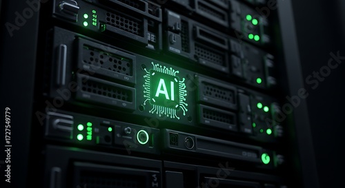 AI Server Cluster Powering Artificial Intelligence with Green Light Technology
