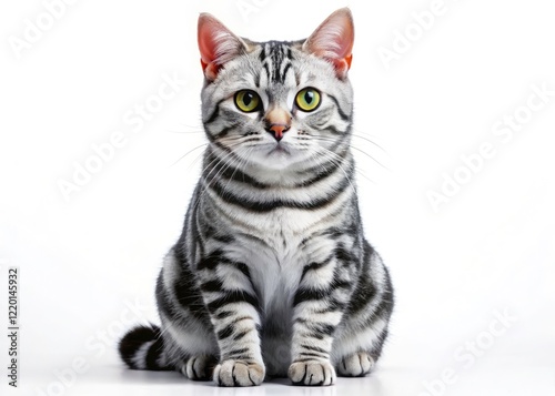AI-crafted panoramic portrait of a stunning silver tabby American Shorthair cat.