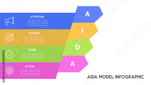 AIDA Model Infographic with Colorful Horizontal Arrows