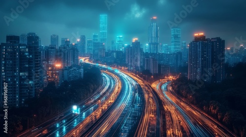 AI-enhanced smart cities with adaptive infrastructure: A futuristic city where roads and buildings change dynamically based on traffic flow.