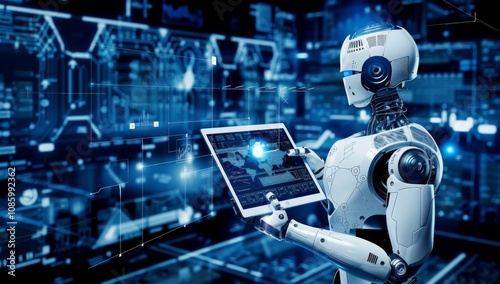 AI-Powered Humanoid Analyzing Big Data in 3D Render