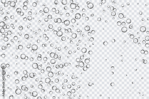 Air bubbles, oxygen, champagne crystal clear, isolated on a transparent background of modern design. Vector illustration of EPS 10.