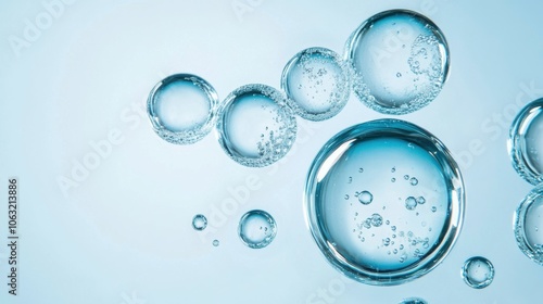 Air cell bubbles for cosmetics product on white background. Cellular serum oil drops in water