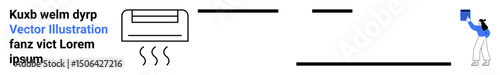 Air conditioner emitting cool air, person using remote to control temperature. Ideal for home comfort, smart control, energy saving, technology, lifestyle, modern appliances, simple landing page