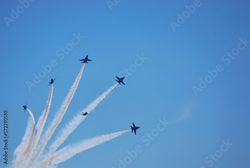 Air force fighter planes on display and doing aerial maneuvers