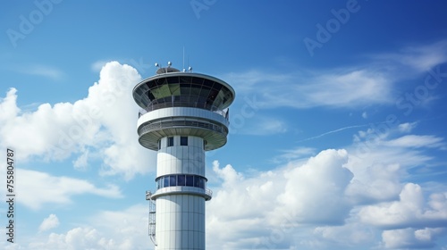 Air traffic control tower guiding aircraft