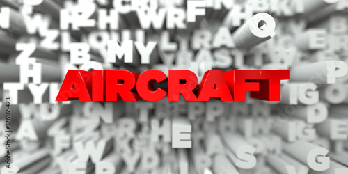 AIRCRAFT - Red text on typography background - 3D rendered royalty free stock image. This image can be used for an online website banner ad or a print postcard.
