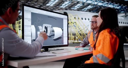 Aircraft Engineer Inspects Jet Engine In Hangar