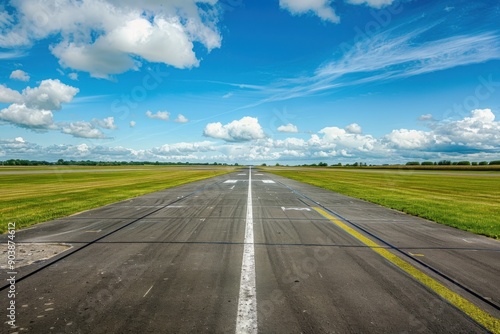 Airfield View: Rural Runway under Blue Sky for Transportation and Travel Scenes