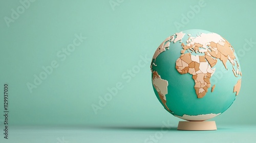 Airline ads travel concept. A colorful globe on a mint green background, emphasizing geography and exploration.