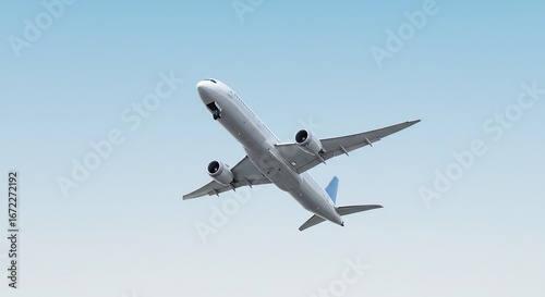 Airplane Ascends Bright Sky Clean Modern Design. AI Generated