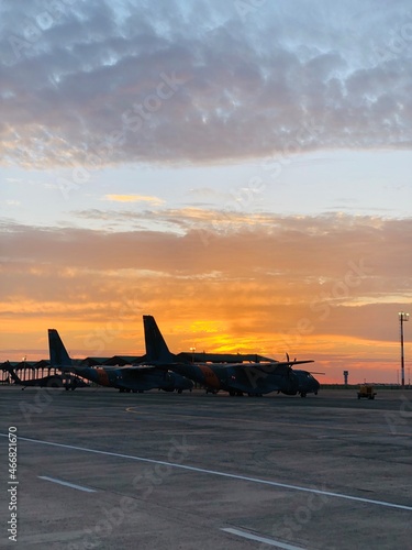 airplane at sunset