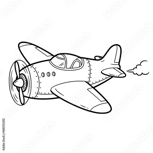 Airplane Flying Cartoon Illustration in Simple Black and White Style
