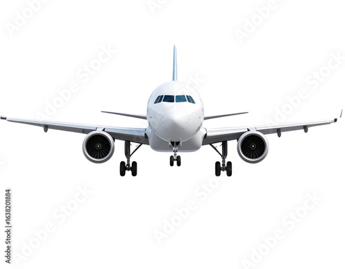 Airplane flying front view vector isolated transparent background
