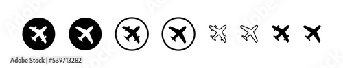 Airplane icon. Plane symbol. Black color. Vector sign.