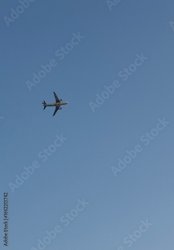 Airplane in clear blue sky concept of travel for airlines, travel agencies, tourism businesses